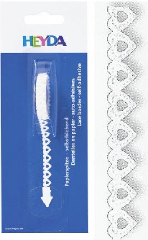 Papírová lepicí páska ve tvaru krajky značky Heyda je vhodná k různým druhům kreativních prací. Můžete ji využít ke zdobení svatebních oznámení, svatebních jmenovek, při balení dárků, zda na libovolné dekorační ozdobení různých předmětů, kterým dodáte jedinečné kouzlo.