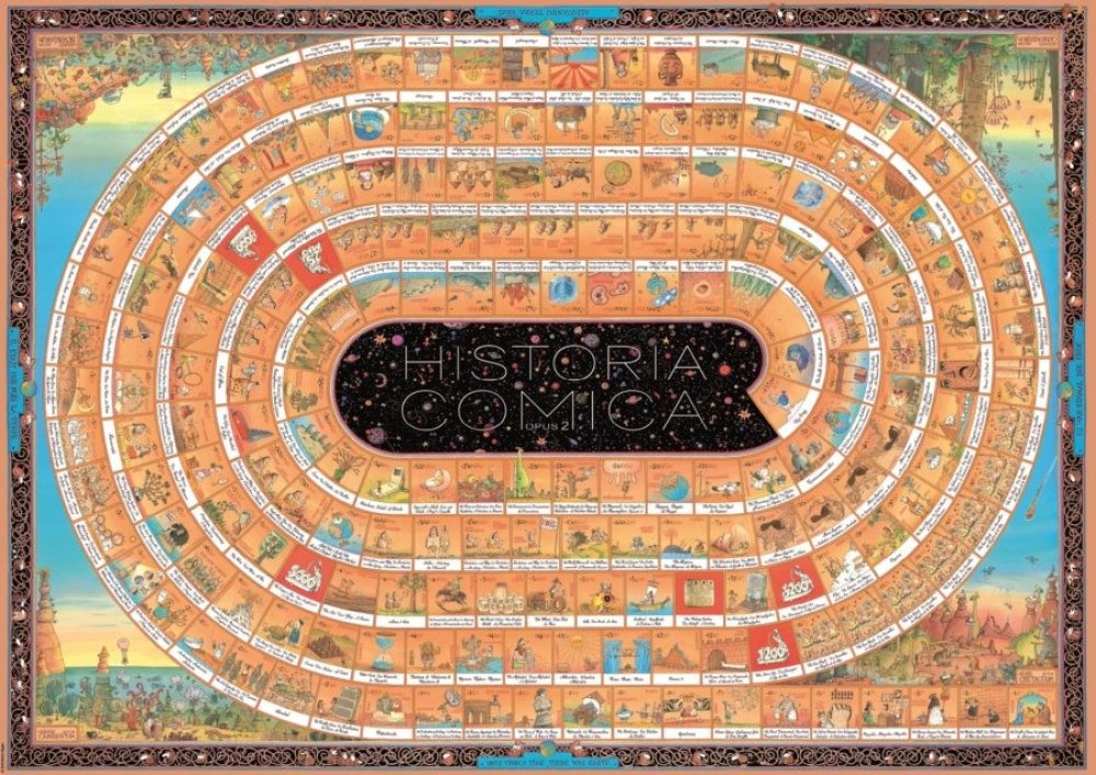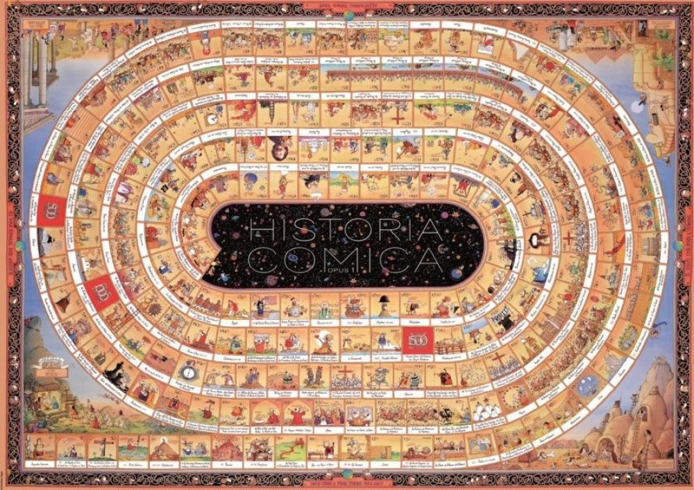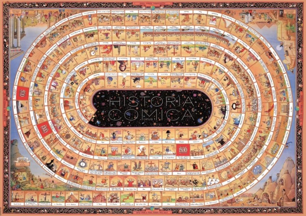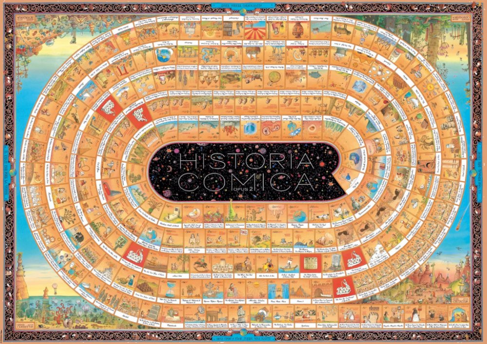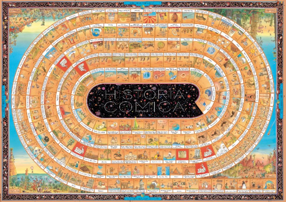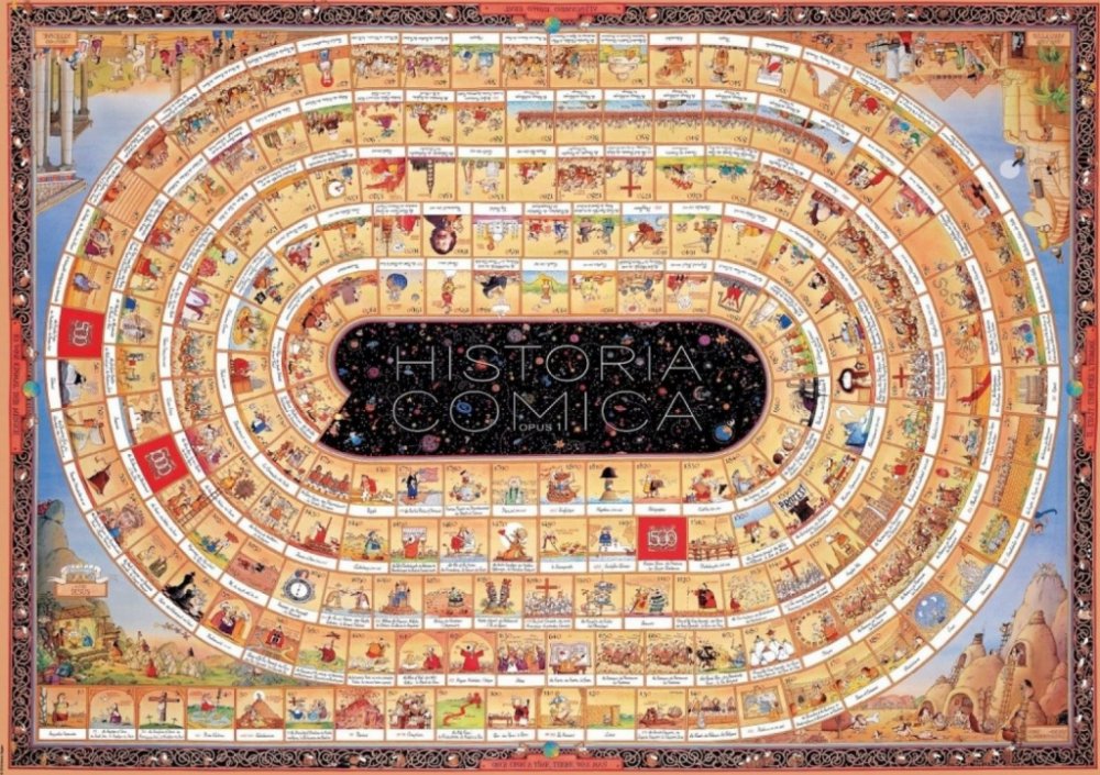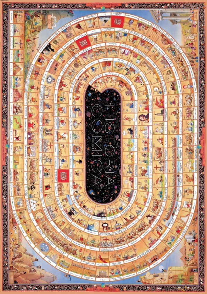 Na přelomu tisíciletí vytvořil italský karikaturista Marino Degano mistrovské dílo a vtipně popsal historii lidstva po jednotlivých krocích od narození Krista až po rok 2000. O deset let později navázal na své dílo a rozšířil jej o časový úsek před rokem nula počínaje Velkým třeskem. Opět tak dokázal, že historie může být nejen zajímavá, ale i neskutečně zábavná !