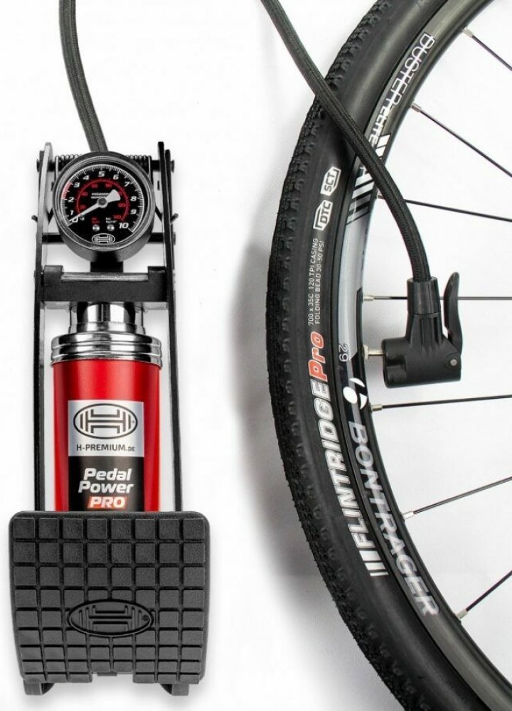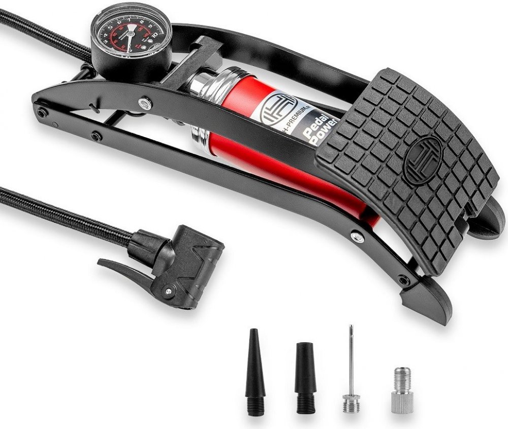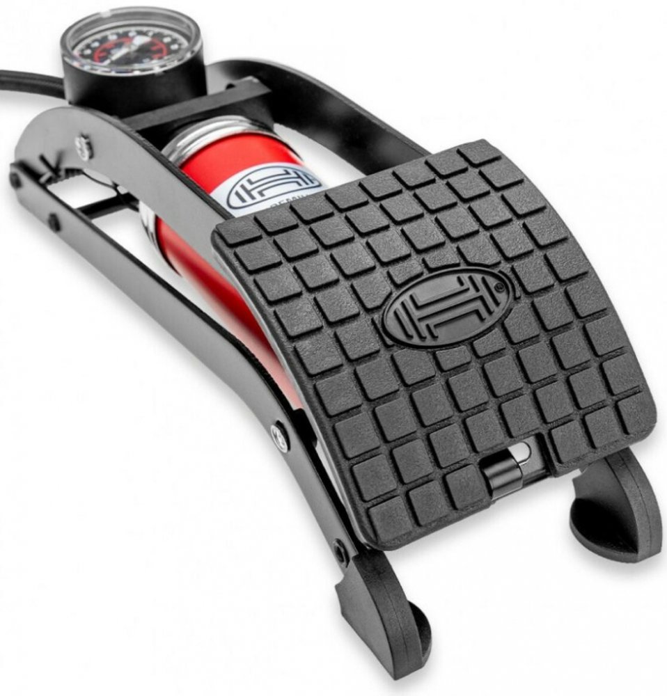 Díky vysokému tlaku vzduchu o tlaku 7 bar zajišťuje pákový vzduchový píst . Je velmi stabilní a snadno se používá: Mezi vlastnosti patří extra silný válec a kvalitní ocelový rám. Nožní čerpadlo je navrženo tak, aby vydrželo vysoký počet použití. Vzduchová hadice je záměrně 65 cm dlouhá, aby u možnila dostatečné manévrování.