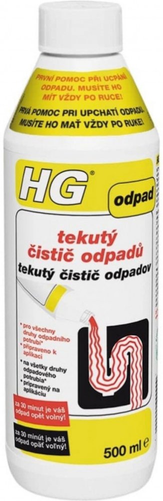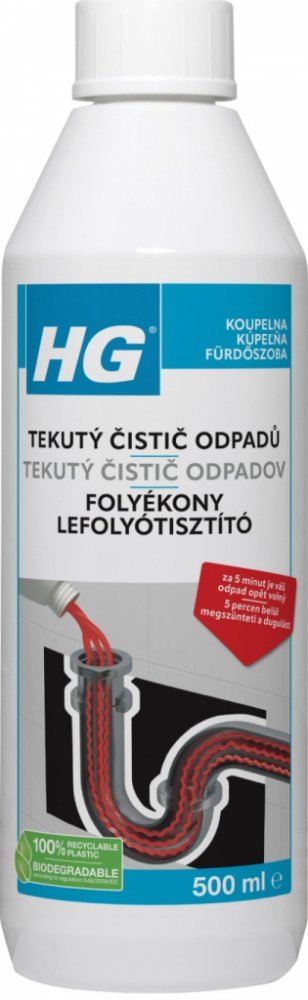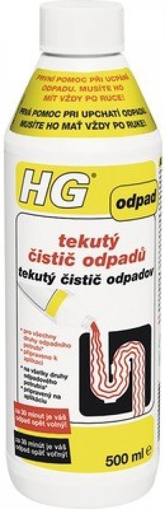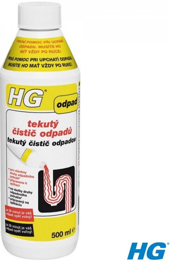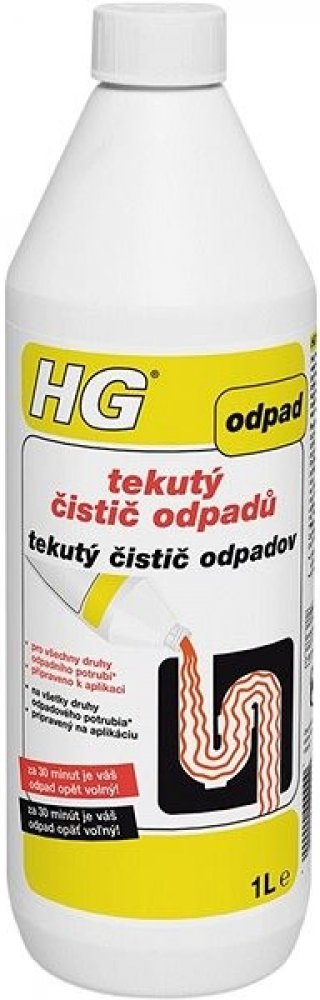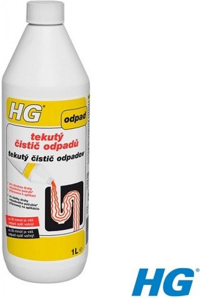 HG tekutý čistič odpadů je jedinečný, bezpečný, avšak velice silný čistič odpadů, který nabízí mnoho výhod. Tím, že je výrobek připraven přímo k použití, nemusíte ho ředit, takže riziko rozstřiku je menší. Výrobek nešumí ani nestříká, když ho lijete do odpadu. Mimoto, tento výrobek nemůže na rozdíl od zrnitých čističů odpadu, ucpání (zanesení...