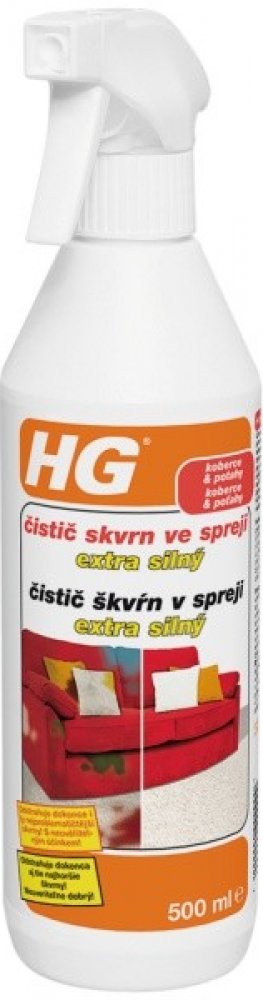 Popis produktuHG extra silný odstraňovač skvrn je obohacen aktivním kyslíkem, díky němuž spolehlivě odstraní i ty nejodolnější skvrny od červeného vína, kávy, čokolády, omáček, rtěnky, krému na boty, ovocných šťáv, tuku a dalších nečistot. Účinně působí například na kobercích, čalounění nábytku nebo autopotazích. Díky aktivnímu kyslíku si poradí i se skvrnami, které pronikly hluboko do vláken.