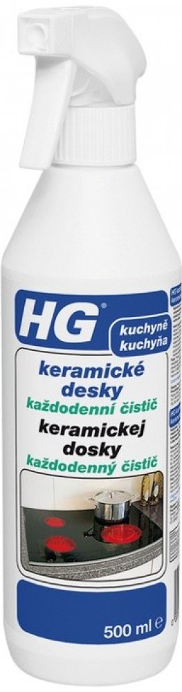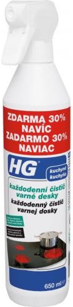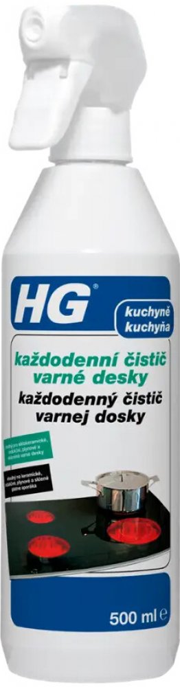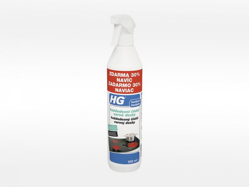* Přípravek HG každodenní čistič varné desky den nastříkejte několikrát na povrch keramické desky a následovně povrch vytřete suchou útěrkou nebo kuchyňským papírem až do úplného vysušení, čistoty a lesku.