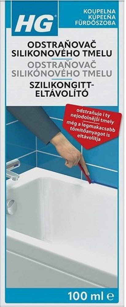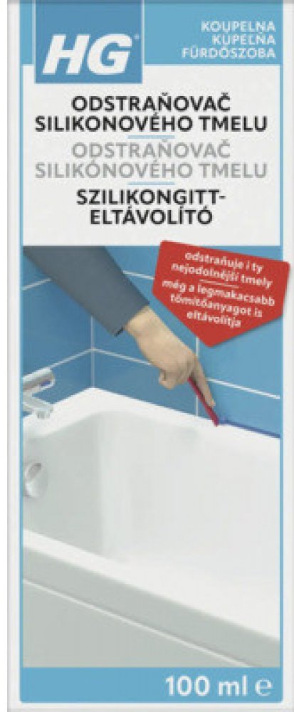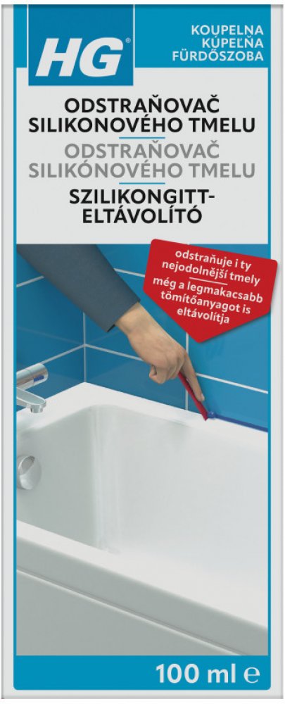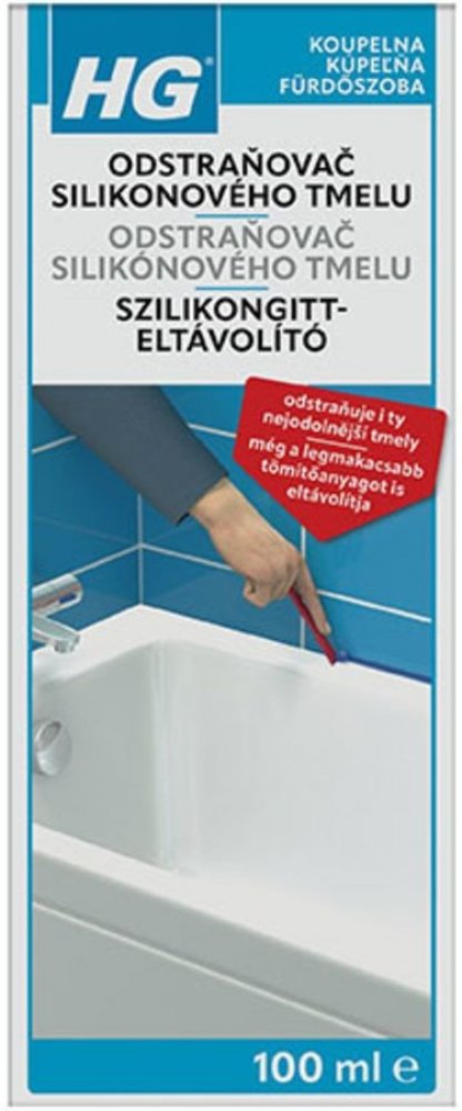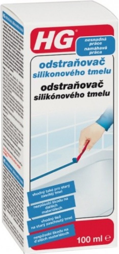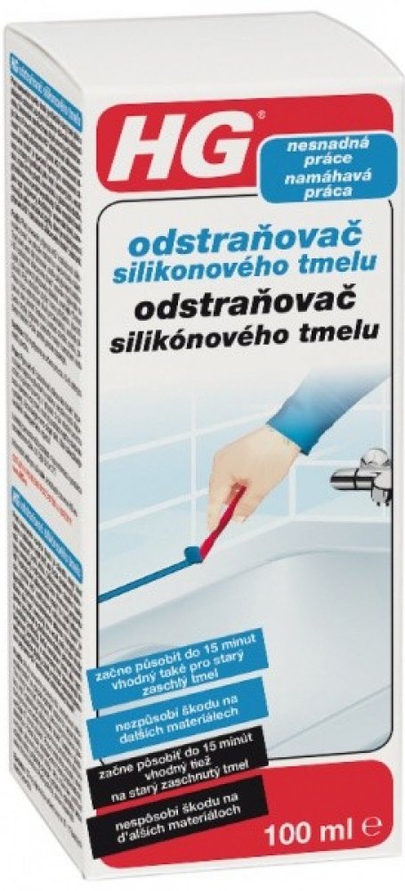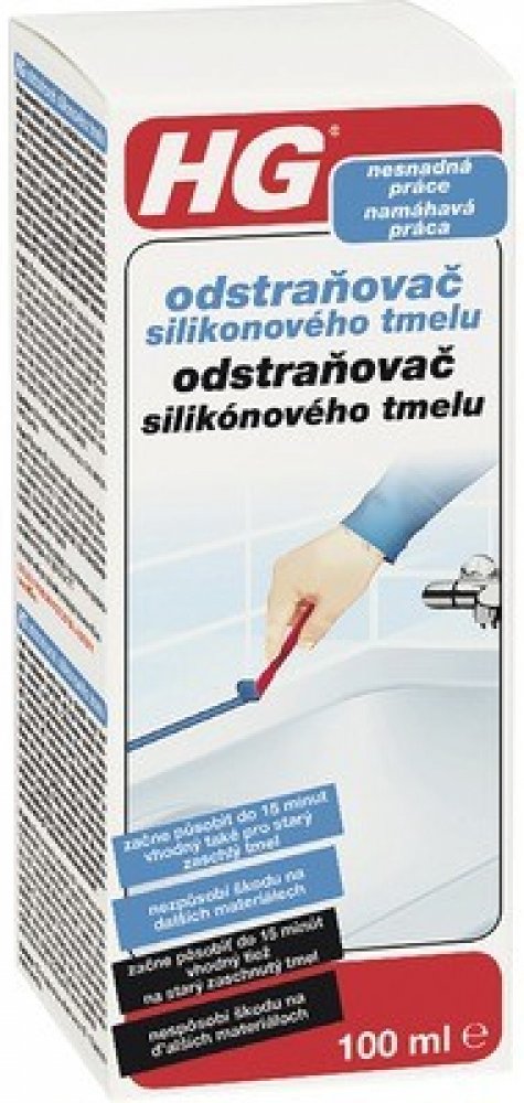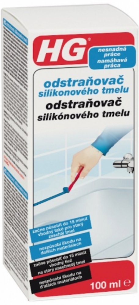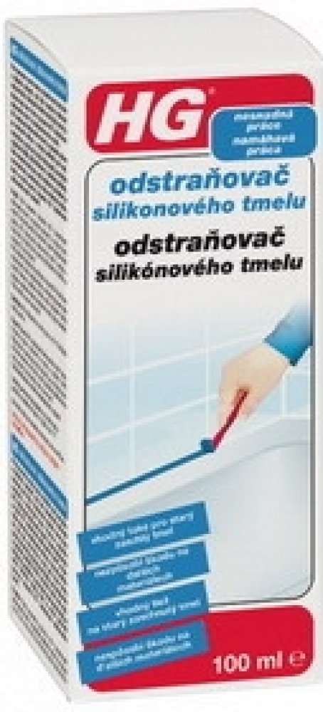 Tmel k odstranění, nožem co nejblíže povrchu odříznete. Tmel, který nemá být odstraněn, pečlivě zakryjte páskou. HG odstraňovač silikonového kytu naneste v silné vrstvě přiloženým štětcem. Nechejte 15 minut působit. Odstraňte zbytky tmelu přiloženou speciální stěrkou. Pokud to nejde snadno, prodlužte dobu působení. Následně povrch vodou a čistou utěrkou očistěte od případných zbytků přípravku HG odstraňovač silikonového kytu.