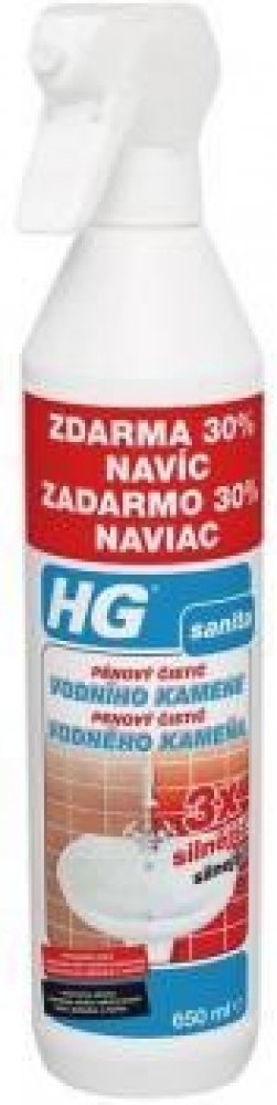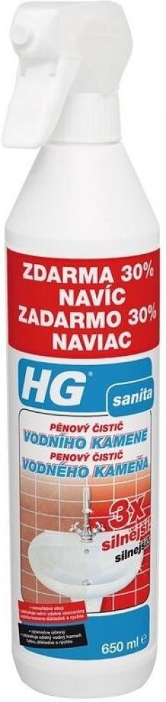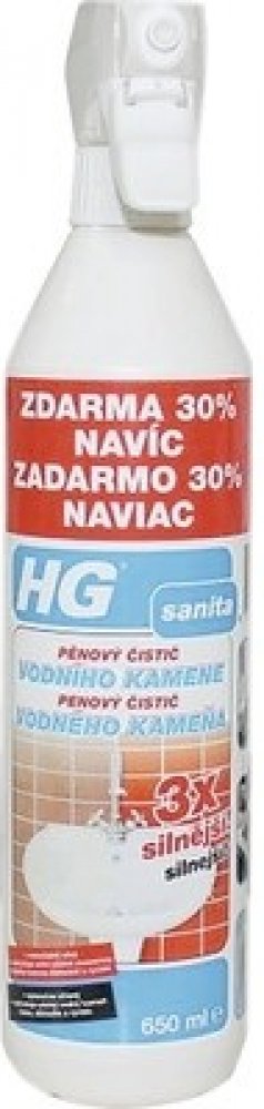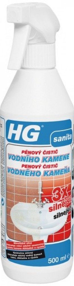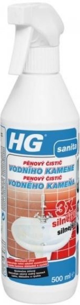 Extrémně účinný pěnový čistič vodního kamene HG zaručuje snadné a důkladné čištění i mimořádně odolných nánosů v kuchyních, koupelnách i jinde. Nepoškodí chrom, smalt ani spárování. Vytváří bohatou pěnu, která při odstraňování vodního kamene například ze sprchového koutu zaručuje delší dobu působení.