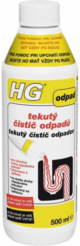 V případě velmi silného ucpání nalejte nejdříve do ucpaného odpadu horkou vodu, poté přípravek HG tekutý čistič odpadů a po 30ti minutách působení jej propláchněte opět horkou vodou.