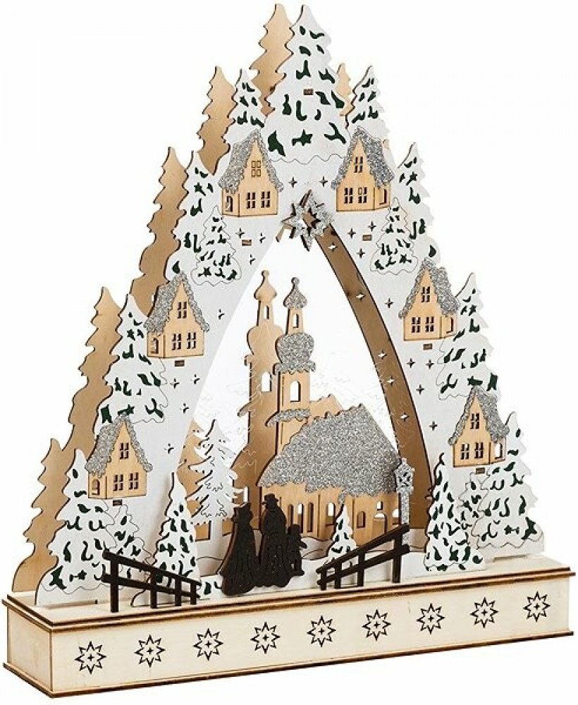 10 LED vánoční město Odměňte se na Vánoce mimořádným dílem. Toto krásné dřevěné vánoční městečko ze dřeva vás okouzlí LED osvětlením a mnoha detaily. o atmosféru se postará 10 LED diod Osvětlení.S 10 výstražnými bílými LED diodamiS vypínačemVhodné pouze pro vnitřní použitíBarva: přírodní, stříbrná, bílá, zelenáMateriál: plast, dřevoProvoz na baterie: 2 x AA baterie (nejsou součástí dodávky)Rozměry (d x š x v): cca 30 x 7 x 33 cmRozsah dodávky: 1 x dřevěné vánoční městečko