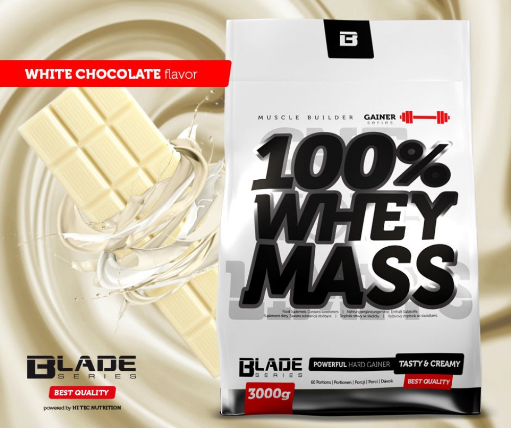 WHEY MASS dodává organismu plnou sadu esenciálních a neesenciálních aminokyselin ve správných poměrech a množství. Nutriční hodnoty HiTec 100% Whey mass gainer 6000g - Vanilka: