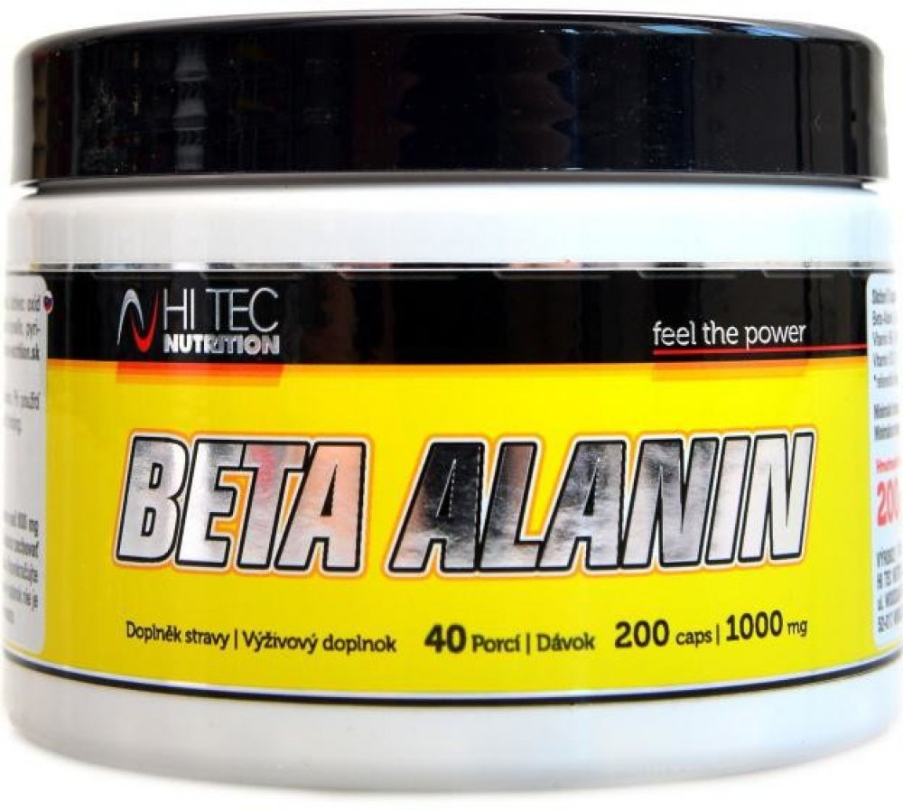 Hi Tec Beta Alanin 850mg 200 kapslí Beta Alanin 200 kapslíProdukt Beta alanin obsahuje 100% látky beta alanin. Při použití těsně před fyzickou aktivitou nám tato látka umožňuje zdolat intenzivnějíš trénink. Beta alanin zamezuje okyselování svalů, což vede ke snížení únavy a vyčerpání, který se často vyskytuje při výkonu těžkého silového tréninku, v praxi to znamená, že sportovec bude schopen provádět více opakování během tréninku a se zvýšeným zatížením, což má za následek rychlejší nárůst svalové hmoty. Je také zdrojem vitamínů B6 a B12.Složení:Beta-Alanin (99,98%), pyridoxin hydrochlorid, kyanokobalamin.Dávkování:Používejte 5 kapslí (jedna porce) před tréninkem. Zapijte dostatečným množstvím vody.