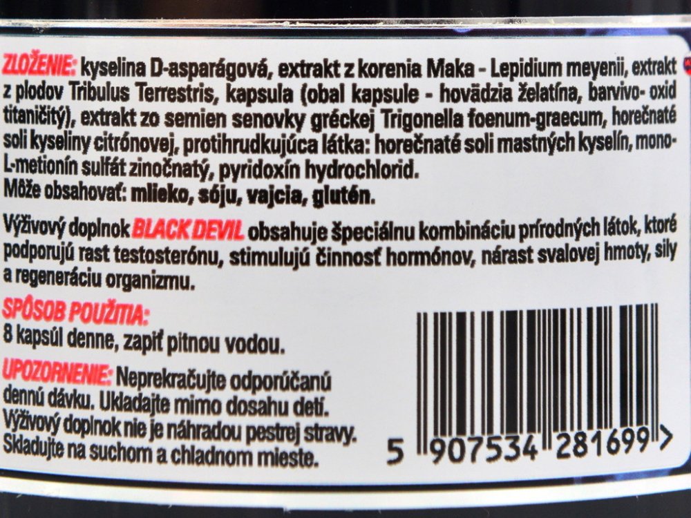 BLACK DEVIL je přípravek, který obsahuje kombinaci nejsilnějších test-boosterů a tím způsobuje zřetězenou reakci, díky které je podpora nárůstu mužského hormonu v těle mnohem efektivnější než kdy dříve.