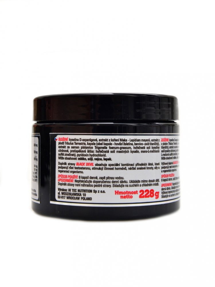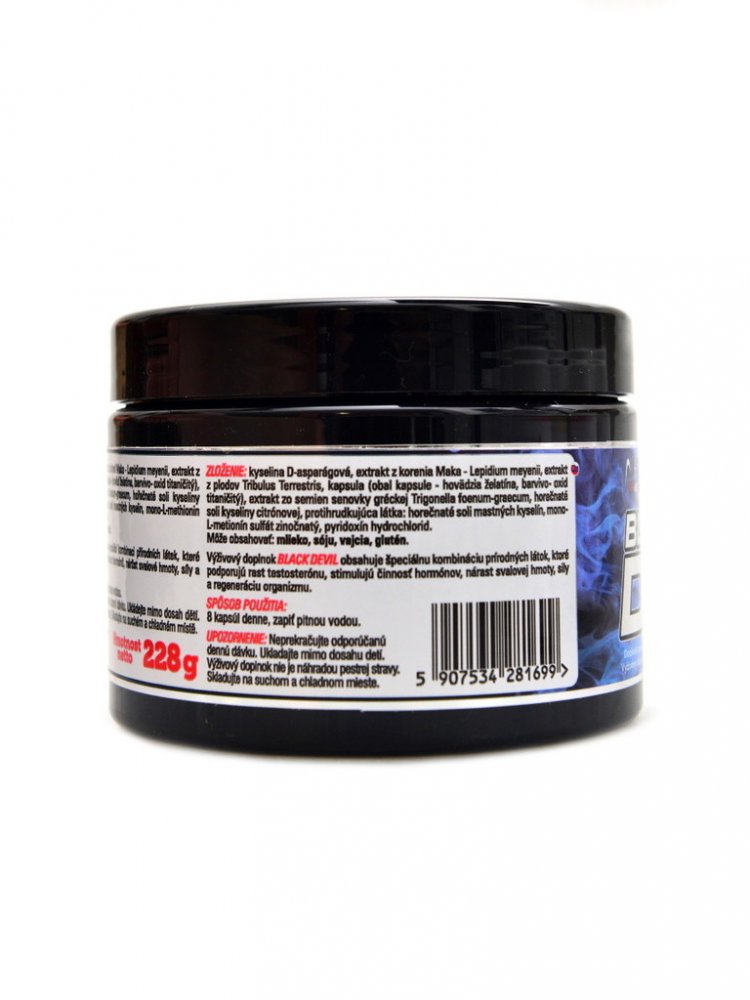 Pro zvýšení účinku DAA obsahuje BLACK DEVIL kompletní ster oidní saponiny Trib. Terrestris (Kotvičník zemní ) a Fenugreek (extrakt z pískavice) zajišťující maximální syntézu a využití mužského hormonu organismem.