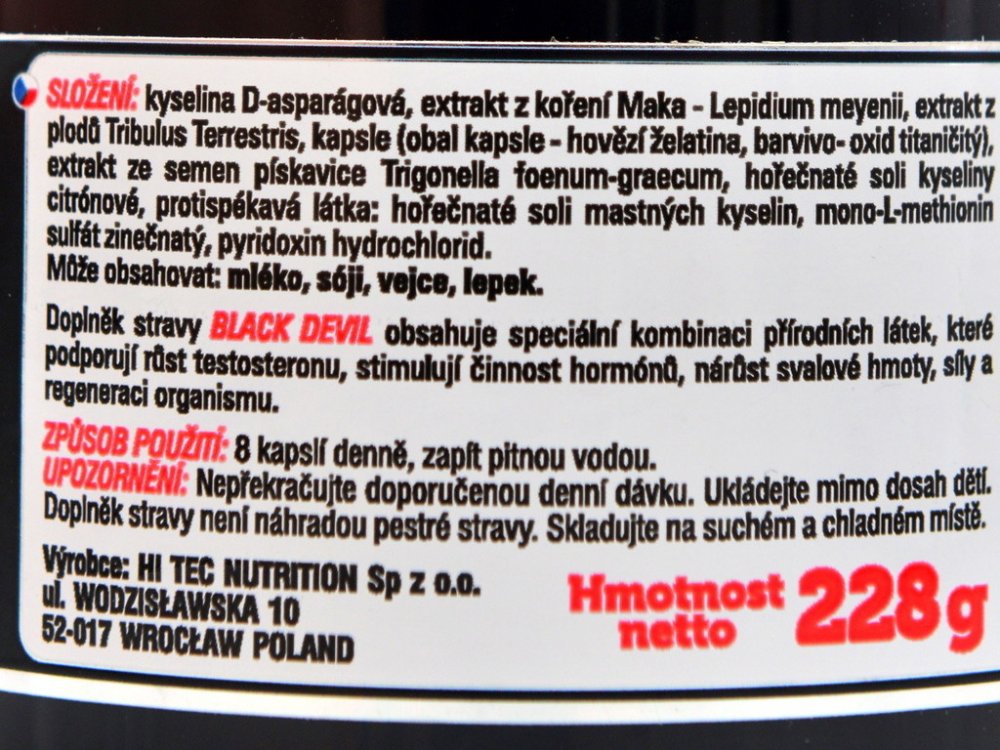 Všechny látky v BLACK DEVIL jsou laboratorně testované na čistotu a zakázané látky. Suroviny nejvyšší jakosti jsou dováženy z celého světa a výrobce vlastní certifikáty kvality GMP/HACCP, ISO 9001-2000.