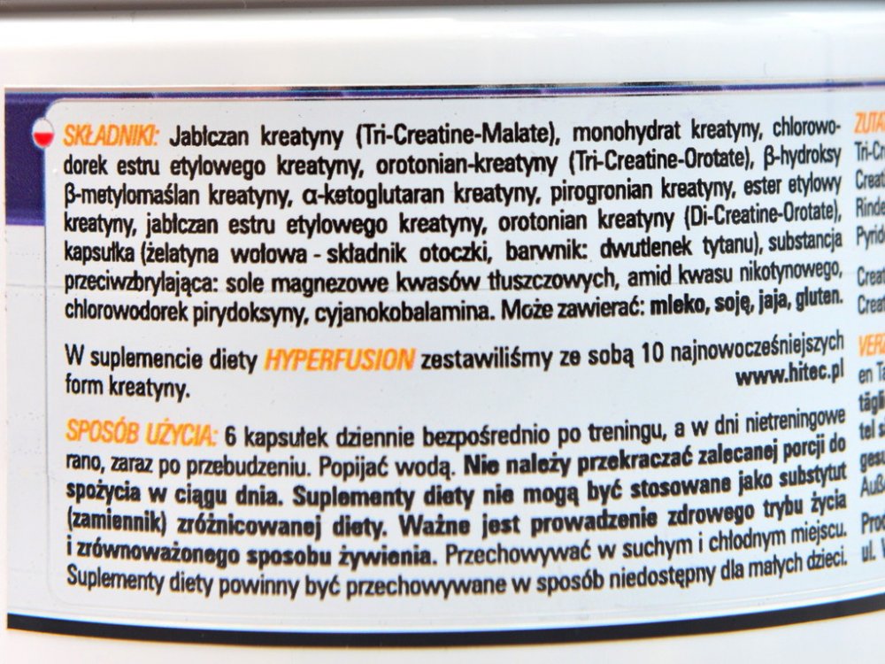 V přípravku HYPER FUSION jsme spojili 10 nejmodernějších forem kreatinu, počínaje nejstabilnějšími estery kreatinu, konče molekulami kreatinu, spojenými s organickými kyselinami a nové, revoluční anabolikum - kreatin orotát. Po použití přípravku HYPER FUSION každý kulturista, i ten nejodolnější vůči působení různých samostatných forem kreatinu, získá obrovskou výhodu v podobě přírůstku síly a svalové hmoty.