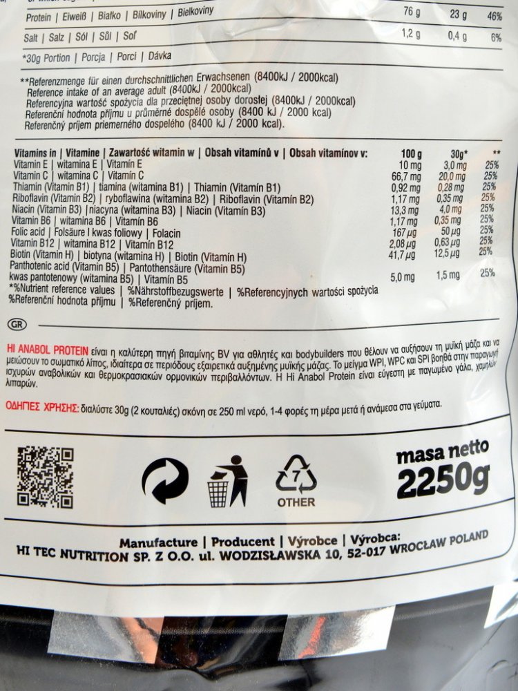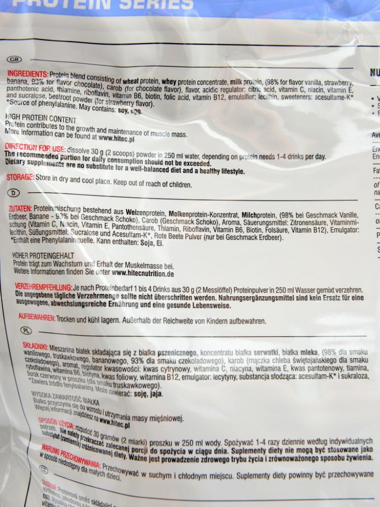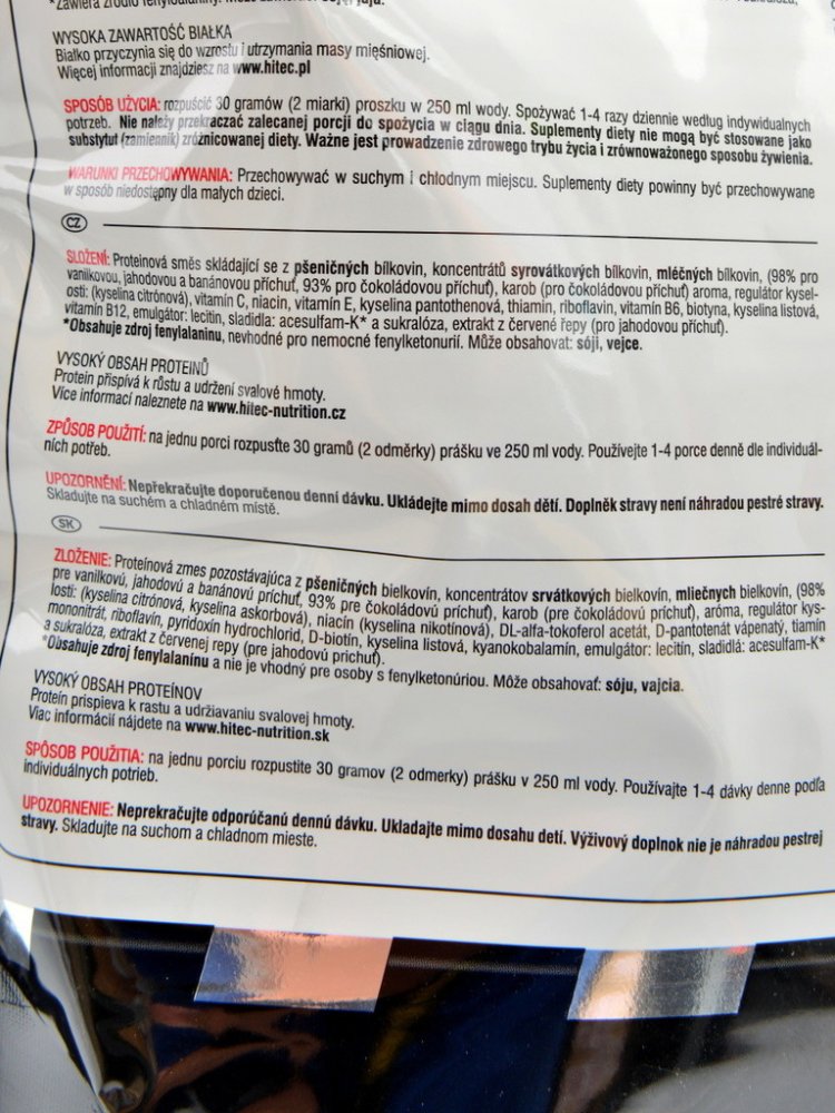 HI TEC PROTEIN je směs koncentrátu syrovátkové bílkoviny, kaseinu a pšeničné bílkoviny, která poskytuje tělu plnou sestavu exogenních a endogenních aminokyselin v optimálním složení a proporci, obsahující 80% bílkovin s velmi vysokou biologickou hodnotou BV = 125 a postupně dlouhou dobou vstřebávání. Tento protein je tak vynikající nejen pop tréninku, ale i jako svačina, nebo na noc. Vyrábí se v několika zajímavých chuťových variantách.