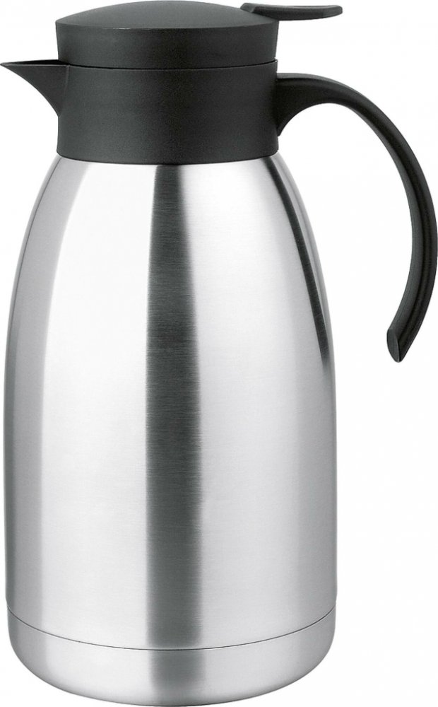 Vakuová konvice 2 litryDíky svým dobrým tepelným vlastnostem zůstává nápoj stále horký nebo studený po několik hodin.Objem: 2 litryBarva: stříbrná, černáMateriál: nerezová ocel, plastRozměry (ØxV): cca 13,5 x 27 cm Vakuový džbán 2 litry z nerezové oceli s jednoruční automatikou, rozměry: cca Ø: 13,5 x V: 27 cm, díky dobrým tepelným vlastnostem zůstane nápoj horký nebo studený po několik hodin, ruk...