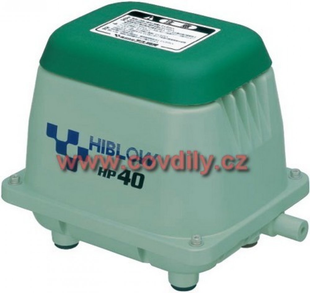 Membránové dmychadlo HP 40 HIBLOW bezolejový provoz, jednoduchá údržba, využití ve venkovním i vnitřním prostředí, tichý chod, litinový kryt, nízká spotřeba elektrické energie, ochrana cívek proti přehřívání, Průtok vzduchu:, při tlaku 100 mbar - 48 l/min, při tlaku 128 mbar - 40 l/min, při tlaku 200 mbar - 28 l/min, napětí 230 V, frekvence 50 Hz, elektrický příkon při pracovním tlaku 128 mbar - 3...