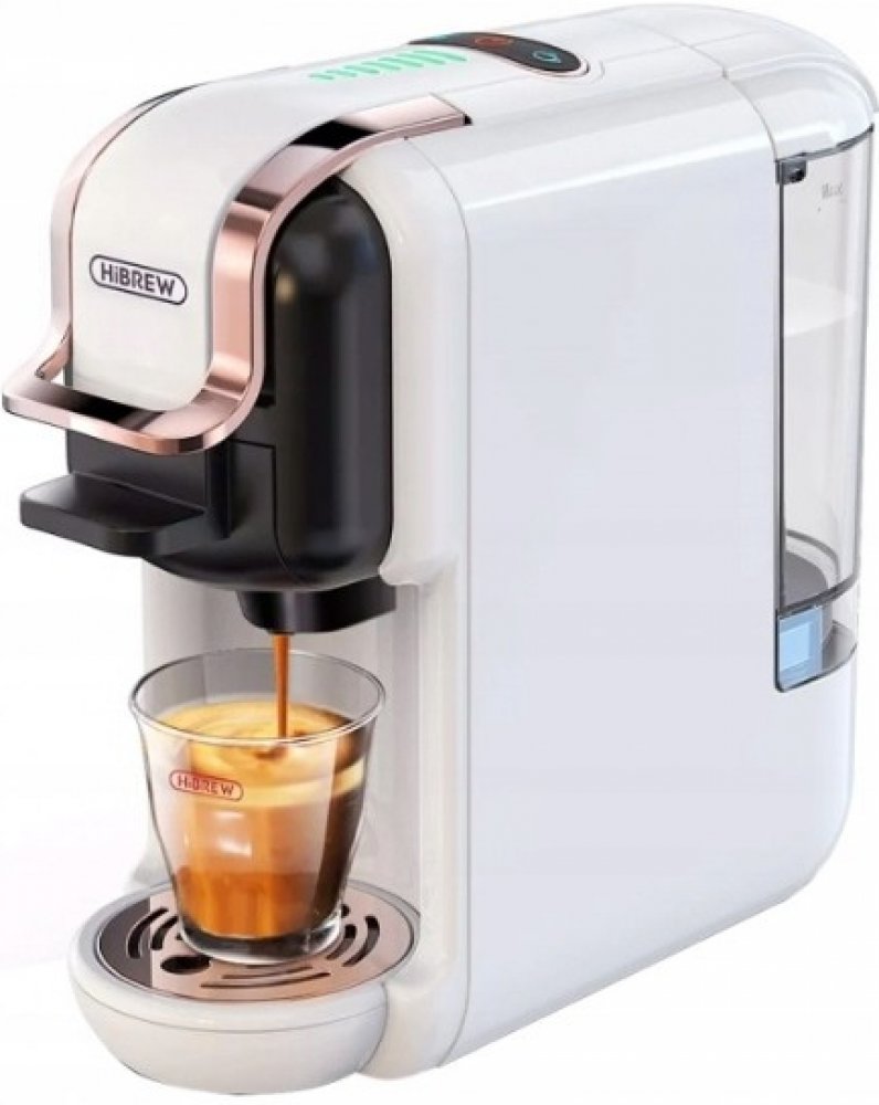 Kávovar HiBREW je kompatibilní s kapslemi Nespresso, Dolce Gusto, Kcup a E.S.E. sáčky. Umožňuje také přípravu mleté kávy. Navíc umožňuje nastavit intenzitu nápoje v 7 úrovních - pouhým stisknutím tlačítka. Kromě toho si můžete připravit kávu s kapacitou max. 350 ml.