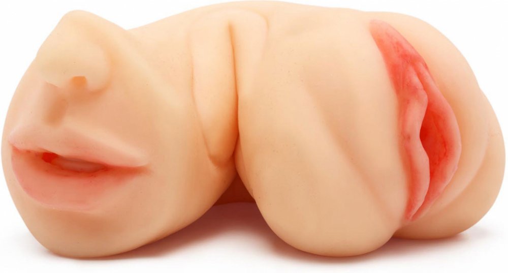 masturbátor se dvěma vstupy tvarovanými do lasturky a pusinky