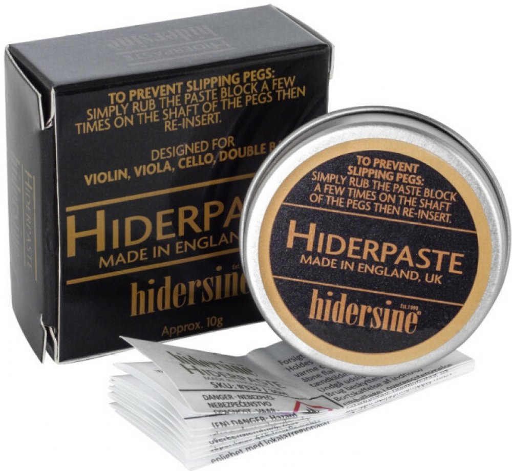 Hidersine 30H Peg Paste Hiderpaste Tin protiprokluzová pasta na kolíky Tato pasta Hiderpaste 30H zabraňuje klouzání kolíků během výkonu. Tradiční recept navržený Hidersine v polovině 20. století. Vlastnosti: Určeno pro: Smyčcové nástroje s kolíky Využití: Proti proklouzávání kolíků Tradiční recept Balena v kovové krabičce