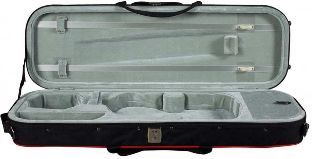 Hidersine HVC polystyrenové pouzdro pro celé housle, pouzdro má potah z Cordura tkaniny, nechybí reflexní proužek, popruhy, boční rukojeť nebo velmi praktická kapsa po celé délce délce, zároveň jistě potěší kovový zámek na klíč, ochranné gumové nožičky nebo sametová podšívka s přikrývkou. Za zmínku jistě stojí také bohatě polstrovaná základna, vnitřní přihrádky nebo 2 úchytky na smyčec.