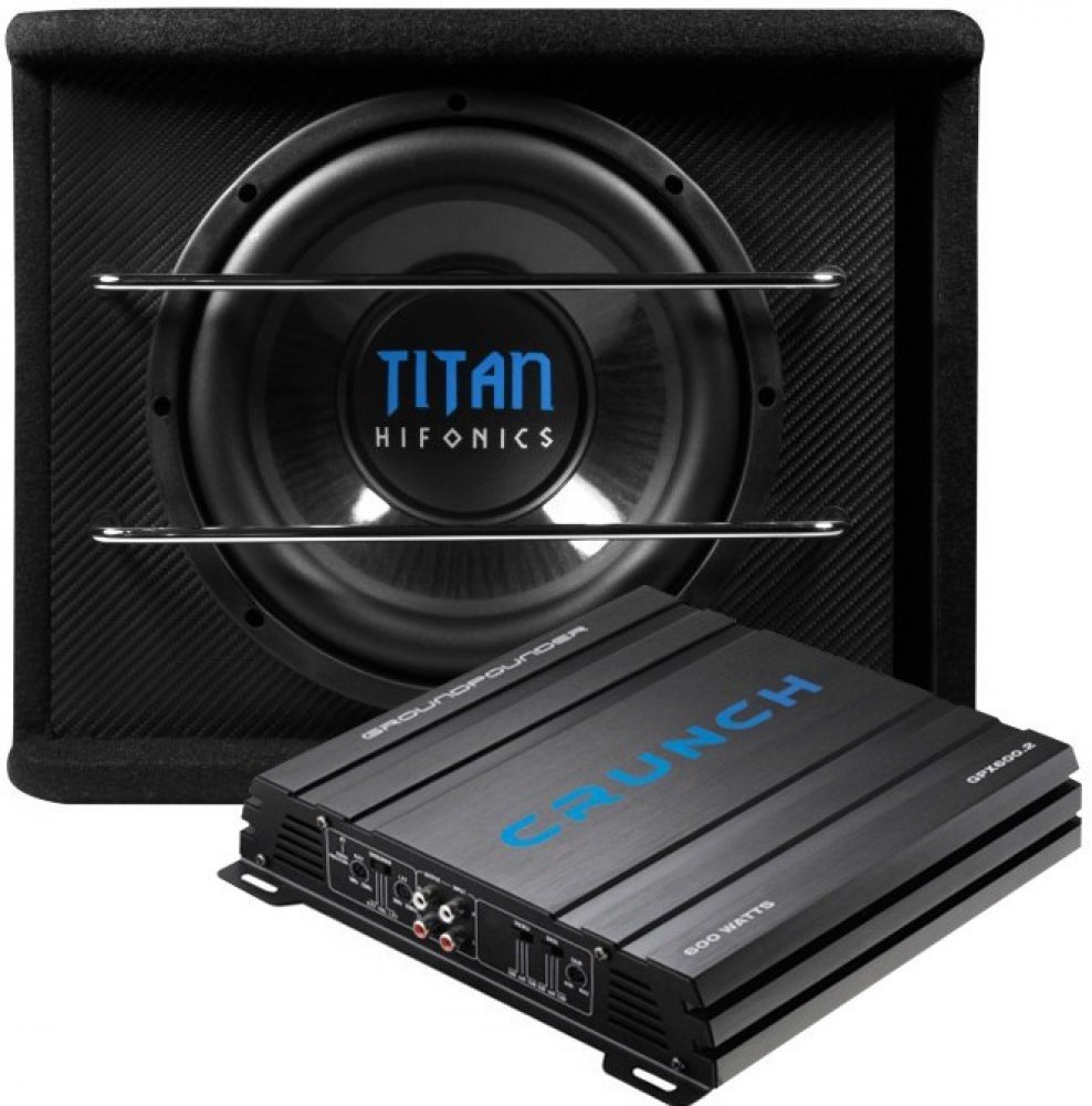Hifonics TS300R + Crunch GPX600.2: akční cenově výhodný set složený z 12" (300 mm) subwooferu do auta v bassreflexovém boxu Hifonics Titan TS300R a 2-kanálového analogového zesilovače Crunch GPX600.2.