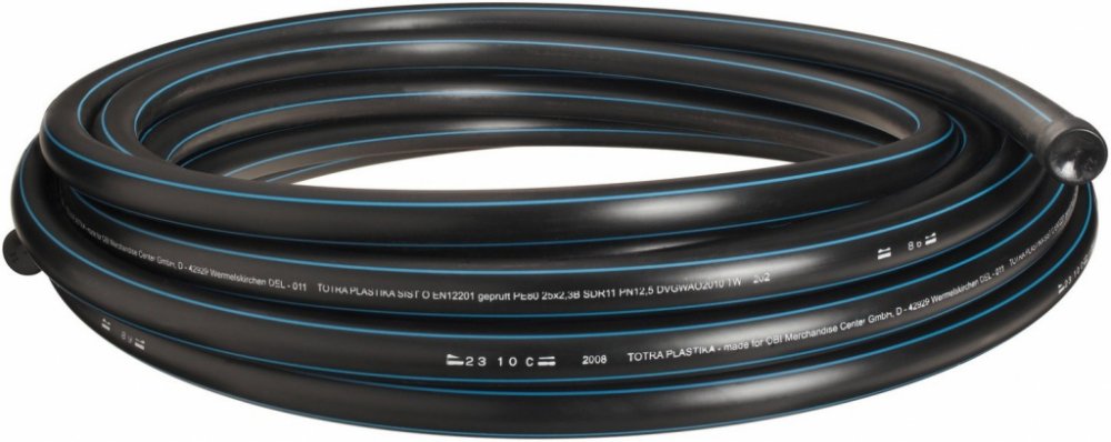 Rozvodná PE hadice vyrobená z pevného, téměř neohebného plastu a je vhodná až do tlaku 16 atm. Veškeré tvarování provádějte pomocí spojek PE hadice.