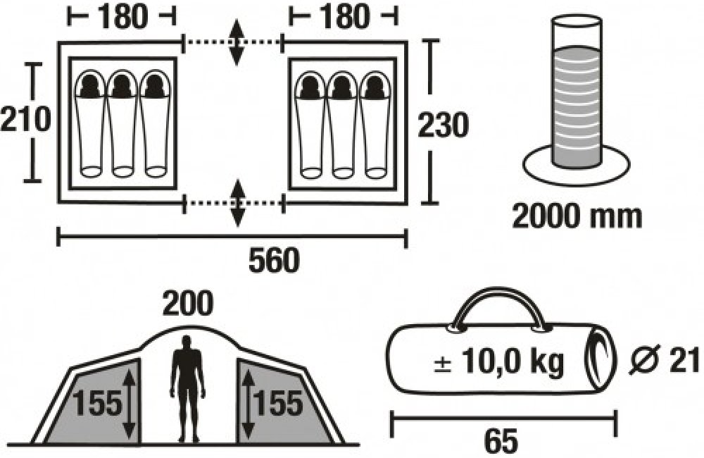 9 kg 540 cm 3000 mm 3000 mm 230 cm 200 cm 6 2 High Peak rodinné tunelové