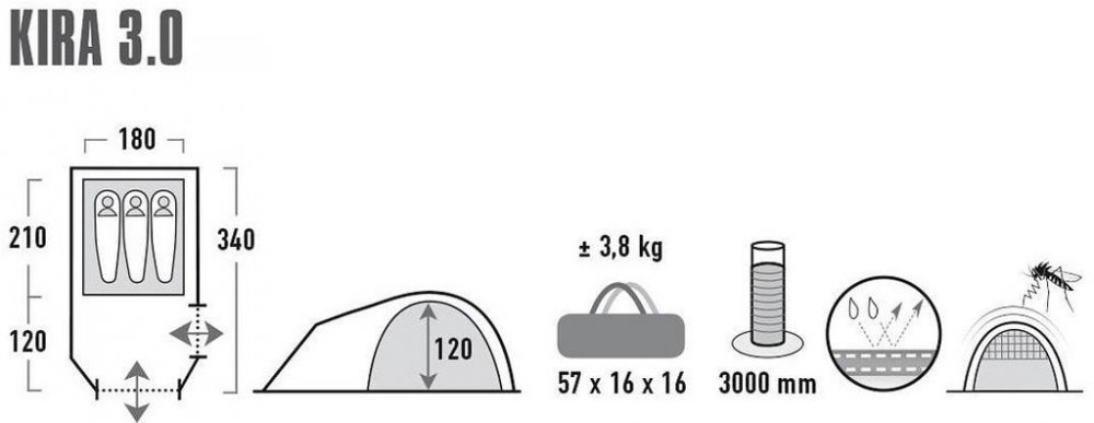 3.8 kg 340 cm 3000 mm 180 cm 120 cm 3 2 High Peak turistické kopulové