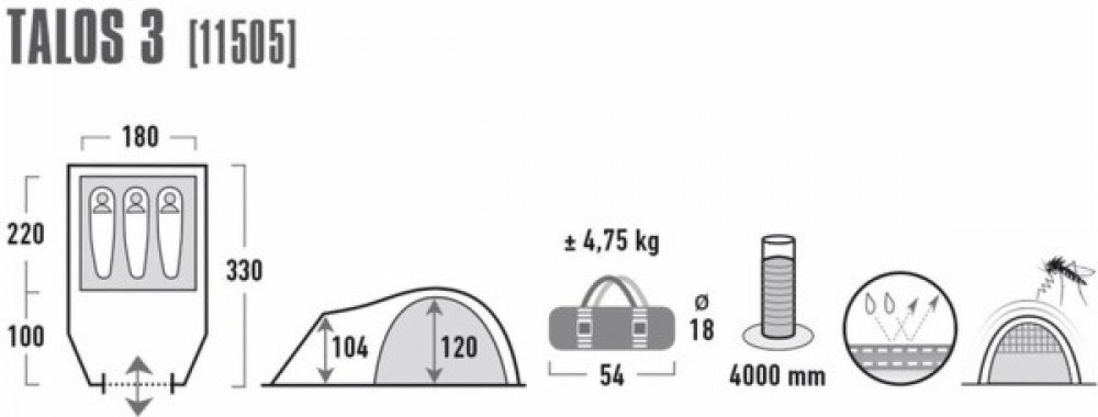 4.75 kg 330 cm 4000 mm 180 cm 120 cm 3 1 High Peak turistické kopulové 1