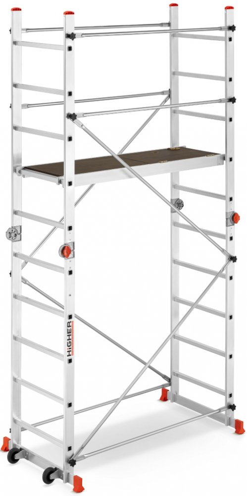 Higher S-7510-A Hliníková pracovní plošina 3,9 m je lehká, stabilní a všestranná konstrukce s maximální pracovní výškou 3,90 m. Díky své mobilitě, snadné montáži a možnosti přizpůsobení výšky je ideálním řešením pro různé stavební a údržbové práce.
