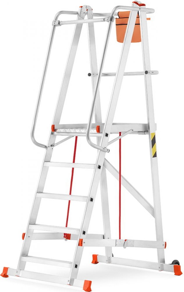 Skladový žebřík HIGHER byl vyvinut s ohledem na pohodlí. Skladovací žebřík HIGHER má sklopnou konstrukci. To umožňuje snadnou přepravu a skladování (pokud se nepoužívá). Systém skládání žebříku je založen na použití silných ocelových kloubových závěsů, které jsou hlavním prvkem sestavy žebříku. Díky speciální konstrukci pracovní plošiny se skládacím systémem lze skladovací žebřík rychle, snadno a bezpečně složit na malou velikost. Žebřík se velmi snadno přepravuje a skladuje (zabírá málo místa). Snadno se skryje a v případě potřeby díky namontovaným kolečkům dopraví na správné místo a během několika sekund se rozloží. To je dobré, osvědčené a pohodlné řešení.