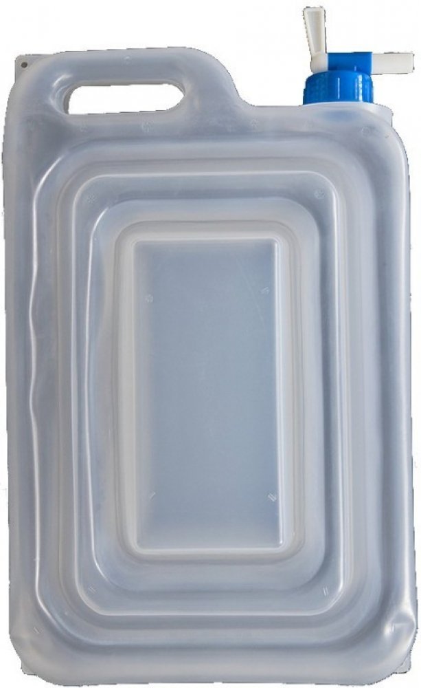 Plastový skládací kanystr je určený především na vodu. Je vybaven širokým uzávěrem s kohoutkem, který zajišťuje pohodlné napouštění vody, nebo umývání rukou. Jakmile je kanystr prázdný, je možné ho složit. Je velmi malý a skladný.