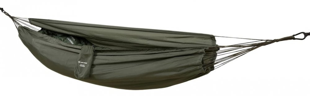 Houpací síť z příjemné a pevné tkaniny, snadné zavěšení, nízká hmotnost, karabiny a přepravní obal součástí balení.