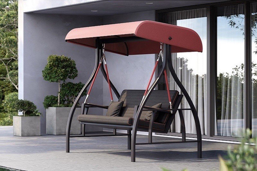 Rozměr: 207cm x 195cm x 135cm (š x v x h)Materiál - sedák/opěrka: olefin (polypropylen) - UV odolnost více než 800 hodinMateriál - střecha: tkanina tchaj-wanMateriál: hliník, teakové dřevoBarva: černá, červená