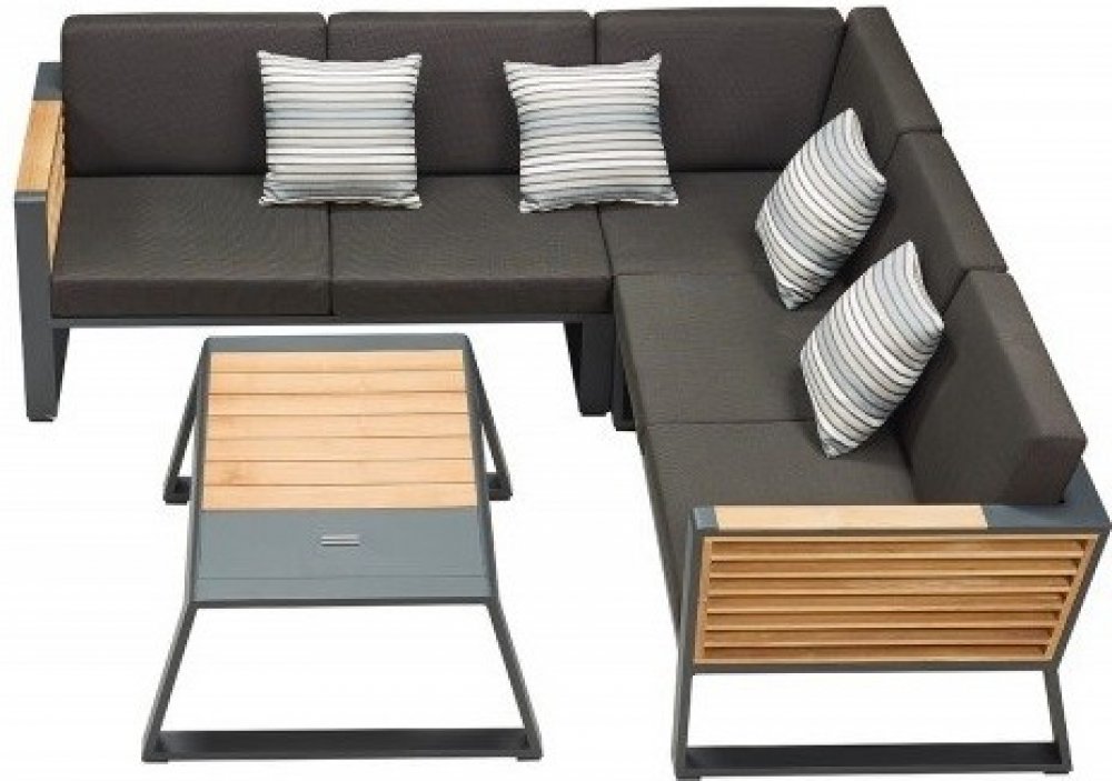 Rozměr - levý / pravý ukončovací díl: 143,5cm x 81cm x 61,5cm (š x h x v)Rozměr - rohový díl: 81cm x 68cm x 61,5cm (š x h x v)Rozměr - stůl: 105cm x 81,5cm x 41cm (š x h x v)Materiál: hliník, teakové dřevoMateriál - sedák: olefin (polypropylen) - UV odolnost více než 800 hodinTloušťka: 1,5mm hliník, 20mm teakové dřevoBarva: přírodní, šedá, antracitováBarva polštáře: bílá / světle / tmavě šedá