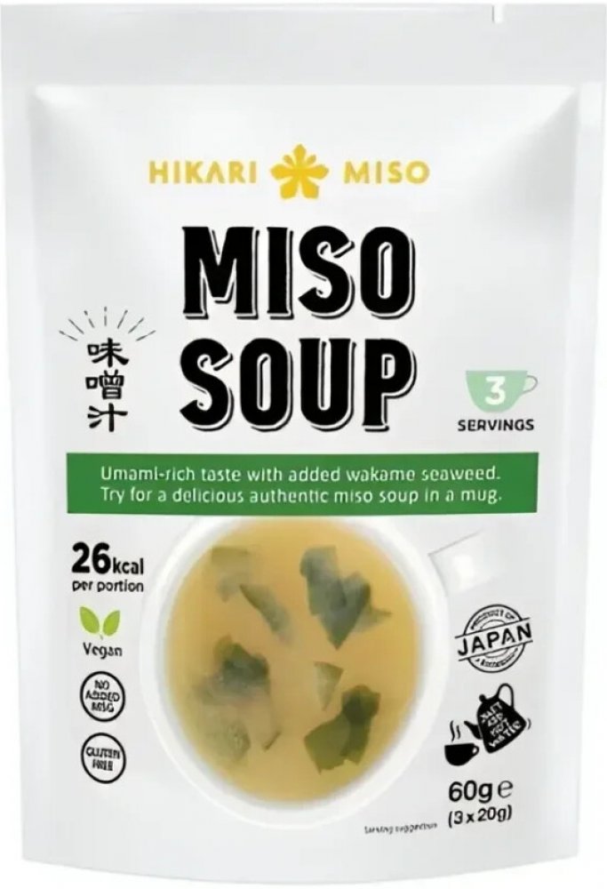 Užijte si autentickou chuť instantní miso polévky s mořskou řasou od Hikari — pohodlná a chutná japonská klasika vyrobená z bohaté sójové pasty a výživné mořské řasy. Každé balení obsahuje tři porce, ideální pro rychlou a uklidňující svačinu nebo lehké jídlo kdykoliv.