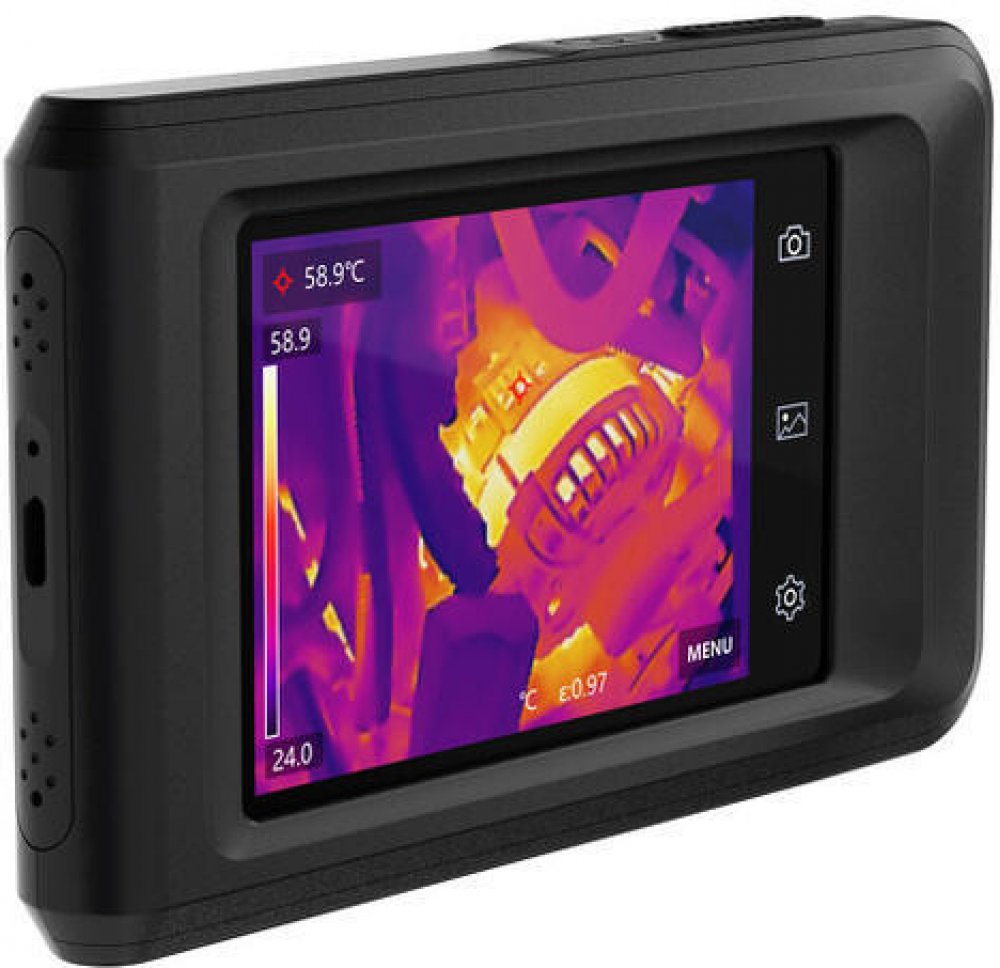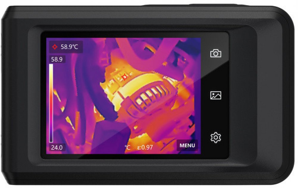 Kompaktní a odolná, snadno přenosná termokamera s 3,5 palcovým dotykovým LCD displejem o velikosti 640 x 480 bodů. Disponuje infračerveným čipem s rozlišením 256x192 bodů a 8 MP čipem pro viditelné spektrum. Umožňuje zobrazení s prolnutím kontur, obraz v obraze nebo samostatně viditelný nebo infračervený obraz. Vhodná pro průmyslové kontroly, umožňuje rychlé skenování elektrického vybavení, strojů...