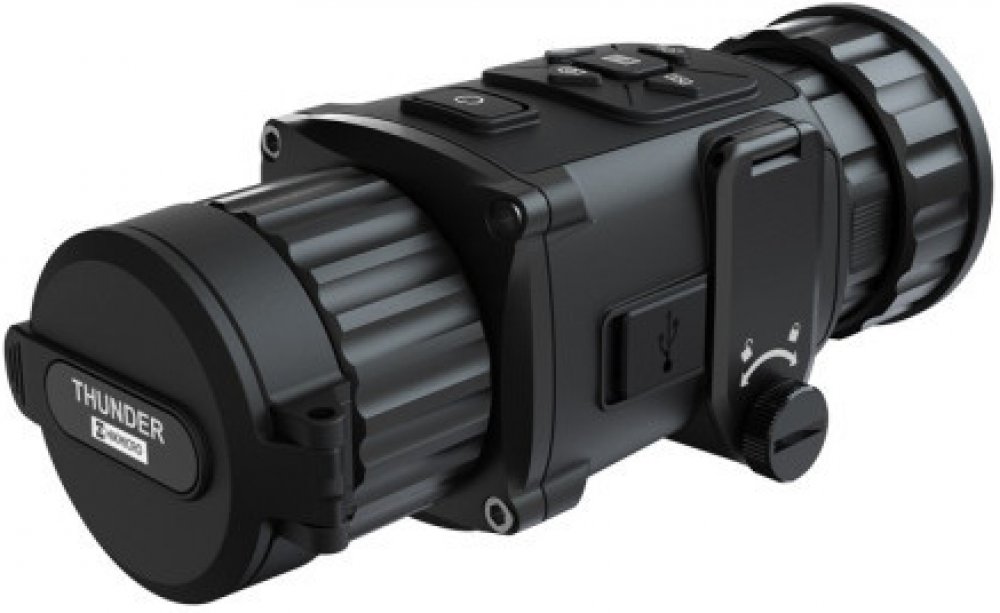 Termovizní předsádka Thunder TE19 CR 2.0 od značky Hikmicro Společnost Hikmicro představuje tuto druhou generaci oblíbené a spolehlivé termovizní předsádky řady Thunder s označením TE19 CR 2.0, která se může pyšnit tím, že stejně jako její předchůdkyně disponuje špičkovou technologií a funkcemi. Tělo je vyrobené z hořčíkové slitiny, proto je zařízení velice odolné a má nízkou hmotnost. Tato vylepšená termovize se dočkala hned několika změn. Kromě nového uživatelského menu je tou hlavní fakt, že v těle termovize se nachází zásuvná baterie Hikmicro s kapacitou cca 4 500 mAh místo konvekčních baterií, které se používaly u starších modelů. Zásuvná baterie disponuje především vyšší výdrží. Ta je nyní schopna vydržet až 10 hodin v nepřetržitém provozu. Baterii můžete snadno dobíjet i v terénu pomocí powerbanky. Stačí ji propojit pomocí nabíjecího kabelu typu USB-C. V pohodlí domova však můžete zařízení dobít i pomocí dokovací stanice. Další změnou, kterou celé zařízení termovize prošlo, je její vzhled. S tím se pojí, že termovize se nyní velice snadno ovládá. Thunder TE19 CR 2.0 klade veliký důraz na jednoduchost a rychlost ovládání tak, aby uživateli bylo poskytnuto maximální pohodlí bez nutnosti složitého nastavování a přepínání funkcí. Díky termoviznímu jádru Hikmicro můžete čekat perfektní obraz, který má rozlišení 256x192px s hustotou pixelů 12μm a teplotní citlivostí