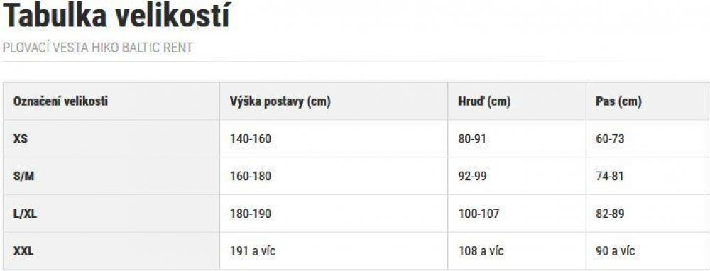 Plovací vesta Hiko Baltic Rent je určena pro širokou veřejnost a je také velmi vhodná pro půjčovny nebo školy. Je certifikovaná dle normy ISO 12402-5. Stahování v pase šňůrkou vpředu umožňuje správné dotažení plovací vesty tak, aby dobře seděla na těle a nedošlo k jejímu vytažení přes hlavu v případě zvrhnutí. Rozepínání vpředu je zajištěno přezkami. Umožňuje pohodlné svlékání a oblékání plovací vesty. Díky utahovacím bokům lze dotáhnout plovací vestu tak, aby dobře a pevně seděla na těle a nebránila v pohybu.