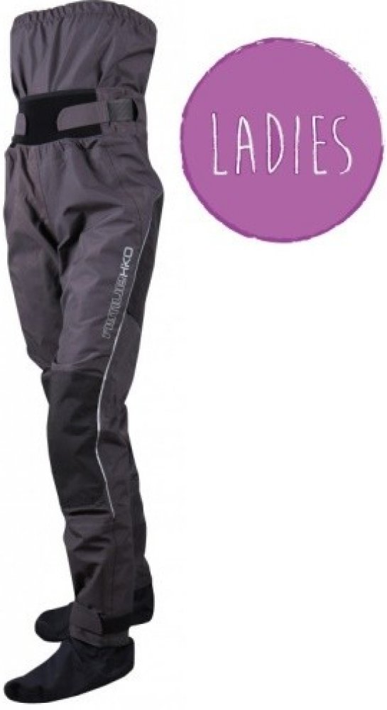 Dámské kalhoty vyrobeny ze čtyřvrstvého prodyšného materiálu. Dvojitý pas je vybaven lehce dotahovatelným systémem, který zabraňuje proniknutí vody. Střihově jsou kalhoty přizpůsobeny pro sezení v kajaku. Exponovaná místa jsou zesílena jako ochrana proti prodření. Pro větší pohodlí vašich nohou jsou kalhoty vybaveny cordurovými vodotěsnými ponožkami. Materiály: CORDURA = PAD 500D. Velmi trvanlivá nylonová tkanina s výbornými mechanickými vlastnostmi, odolná vůči působení ropných produktu a detergentu, vysoce oděruvzdorná a pevná v tahu. Airfour - Čtyřvrstvý materiál s výbornými parametry. Technické parametry materiálu WP25.000m/m,MVP15.000g/m2/24Hrs
