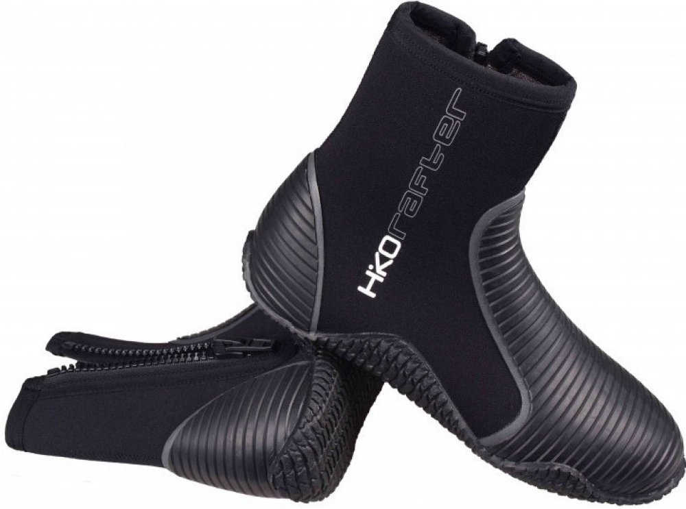 Vysoké neoprenové boty Hiko Rafter z 5 mm silného neoprenu se zesílenou podrážkou mají výztuhy, které chrání prsty, patu a celý nárt. Boční zip.