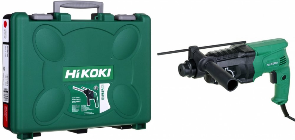 Kladivo Hikoki DH24PH2 je výkonný nástroj, ideální pro náročné vrtací a sekací práce. Max. vrtací průměr do betonu: 24 mm, Max. vrtací průměr do oceli: 13 mm, Max. vrtací průměr do dřeva: 32 mm, Vrtací korunka průměr: 50 mm, Otáčky na prázdno: 0 – 1050/min, Počet úderů: 0 – 3950/min, Příkon: 730 W, Síla příklepu: 2,7 J, Hmotnost: 2,7 kg, Celková délka: 367 mm.