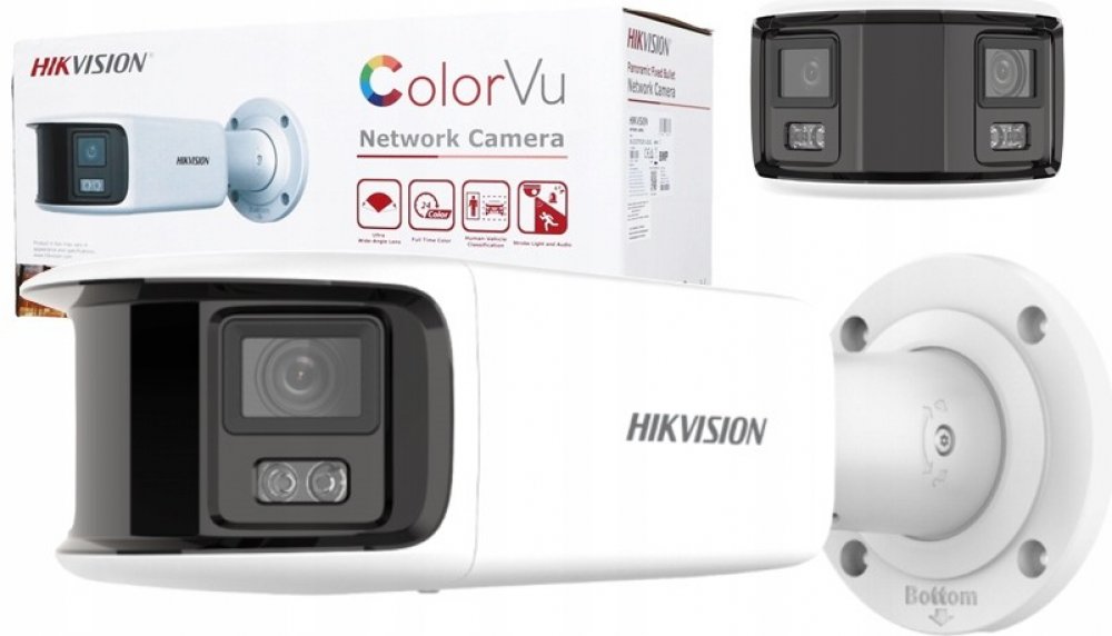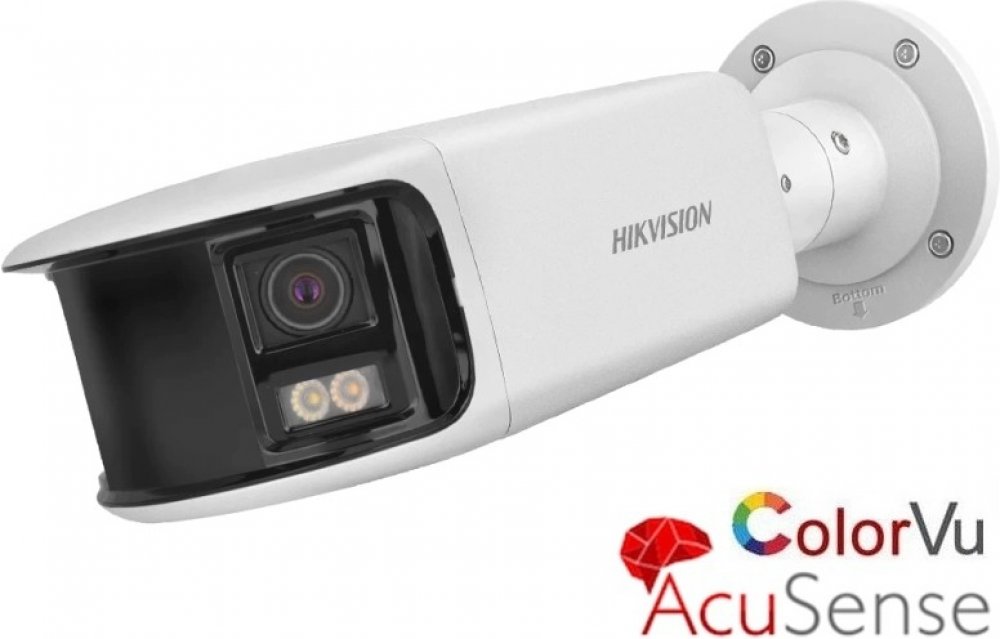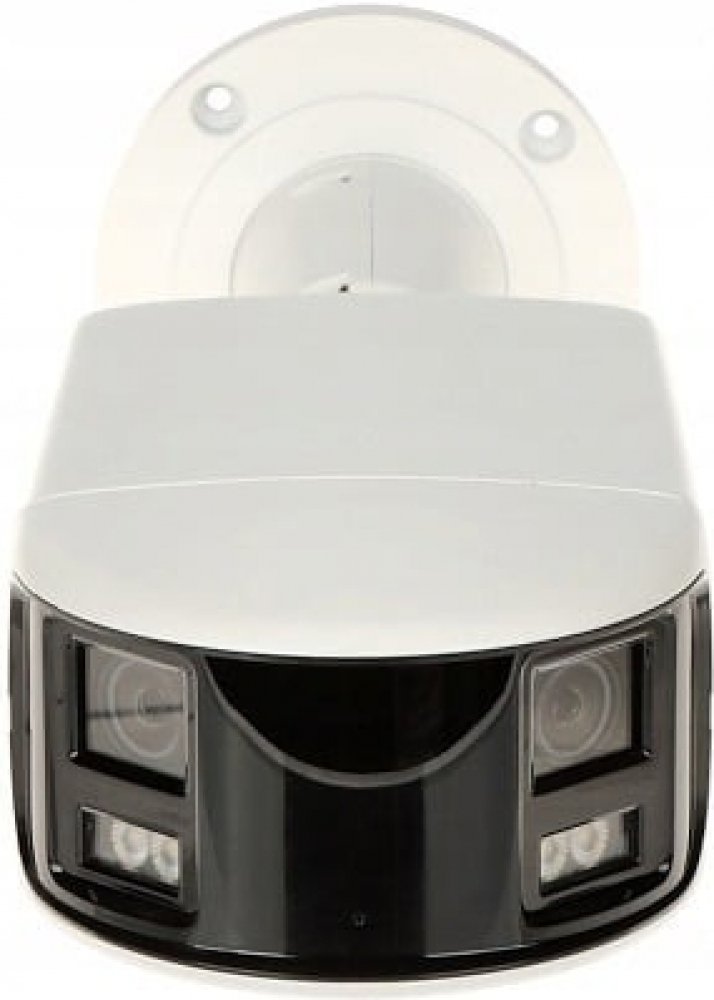 8 Mpx IP AcuSense panoramatická kamera, ColorVu, LED 40m, WDR 130dB, 2x 1/1.8 Mega Progressive Scan CMOS čip s maximálním rozlišením 5120 x 1440, 2x objektiv 4mm, celkový horizontální úhel záběru 180°. DEEP LEARNING - analýza na odfiltrování falešných poplachů, detekuje osoby či vozidla pro snadné vyhledávání v záznamu a pro úsporu prostoru na pevném disku. Světelná citlivost 0,0005 lux, F1.0 (AGC...