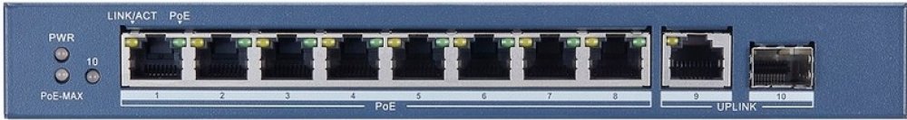 8 × gigabitový port PoE , 1 × gigabitový port RJ45, 1 × port SFP