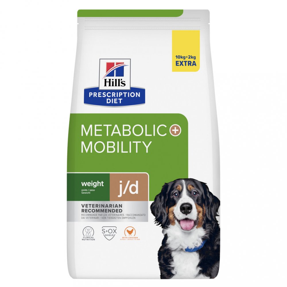 Artróza a nadváha jsou častými problémy u psů a většinou se vyskytují pararelně. Hill´s Prescription Diet Canine Metabolic & Mobility se snaží těmto potížím předcházet. Kompletní krmivo s klinicky ověřenou recepturou, obsahující životně důležité látky a redukované množství energie, posiluje stavbu kostí. Navíc napomáhá při redukci hmotnosti a udržuje psa v dobré kondici. Studie prokazuje, že již po 21 dnech dochází k redukci potíží.