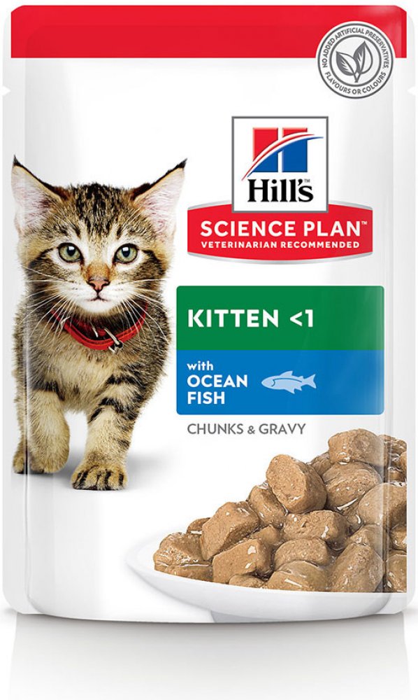 Kapsičky Hill's Science Plan Kitten byly vyvinuty díky vědeckým poznatkům o optimálním růstu koťátek. Křehké kousky v omáčce obsahují jedinečnou kombinaci antioxidantů, které spolu s vitamíny podporují zdravý imunitní systém. Normální a zdravý vývoj mozku může podpořit obsažená omega-3 mastná kyselina DHA. Všechny ingredience jsou speciálně vybrané a mimořádně kvalitní. To pak přispívá k funkci trávicího ústrojí, a tím i k nejvyšší úrovni pohody. Vaše kotě tak může objevovat svět bez obav. Varianta Drůbeží výběr 12 x 85 g obsahuje následující druhy: 6 x kuřecí 6 x krůtí Varianta Drůbeží výběr 48 x 85 g obsahuje následující druhy: 24 x kuřecí 24 x krůtí Varianta Rybí výběr 12 x 85 g obsahuje následující druhy: 6 x kuřecí 6 x mořské ryby Varianta Rybí výběr 48 x 85 g obsahuje následující druhy: 24 x kuřecí 24 x mořské ryby Hill's Science Plan Kitten: Kompletní krmivo pro koťata do 12 měsíců věku Jedinečná kombinace antioxidantů a vitamínů: podpora zdravého imunitního systému Vysoce kvalitní složky: mohou podpořit zdravou funkci trávicího traktu Omega-3 mastná kyselina DHA: podporuje optimální a zdravý vývoj mozku Neuvěřitelně chutné: pro optimální přijetí Vaší kočkou, různé příchutě zajistí rozmanitost v misce Dlouhodobější čerstvost: díky praktické porci v kapsičce