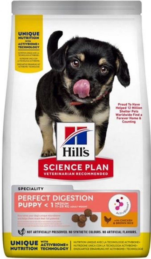 Hill's Canine Science Plan +AB Perfect Digestion Puppy Medium Chicken & Rice je kompletní krmivo navržené speciálně pro štěňata středních plemen, které podporuje optimální růst, vývoj trávicího systému a posiluje imunitní systém. Klíčovou složkou je prebiotická směs ActivBiome+, která významně zlepšuje střevní mikrobiom a tím celkové zdraví. Výhody pro zdraví: Podpora trávení a zdravého mikrobiomu...