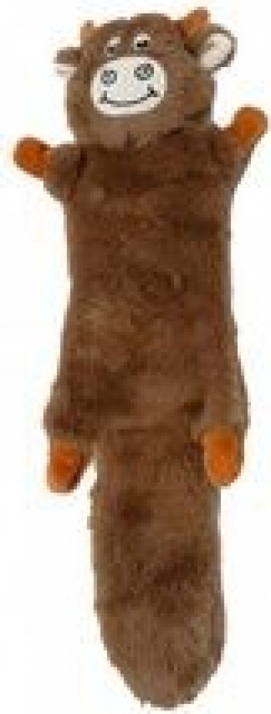 Plyšová hračka pro psy - kráva. Má měkce vyplněnou hlavu s vyšívaným obličejem. Tělíčko není vyplněné pouze obsahuje šustící materiál, stejně jako široký a dlouhý ocas. Šustivý zvuk zaujme a láká psa, aby si s hračkou hrál a zvuk znovu vyvolal. V hlavičce je zase ukryté pískátko.