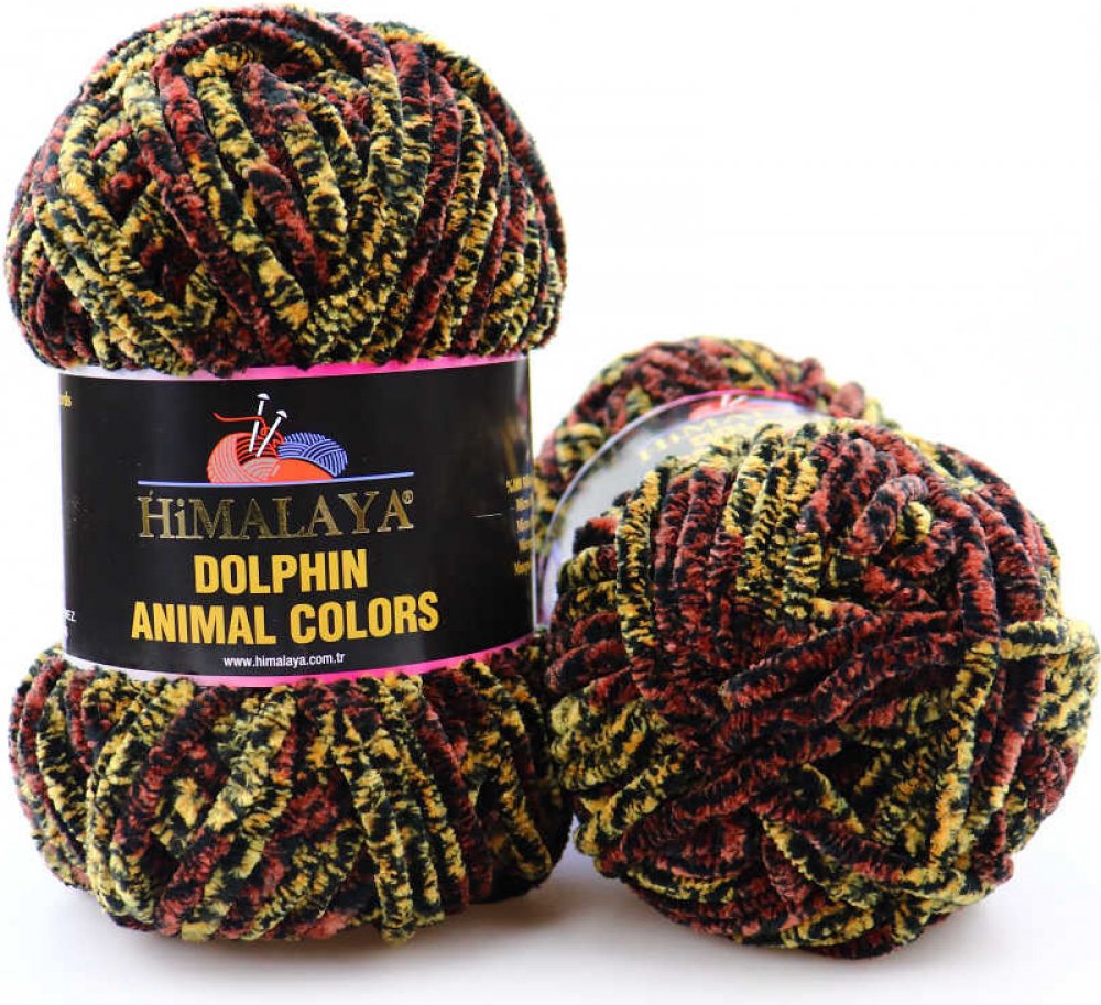 Příze Dolphin Animal Colors je příjemná žinylková příze vysoké kvality, sametová na dotek, v barvách a vzorech zvířecí kůže.