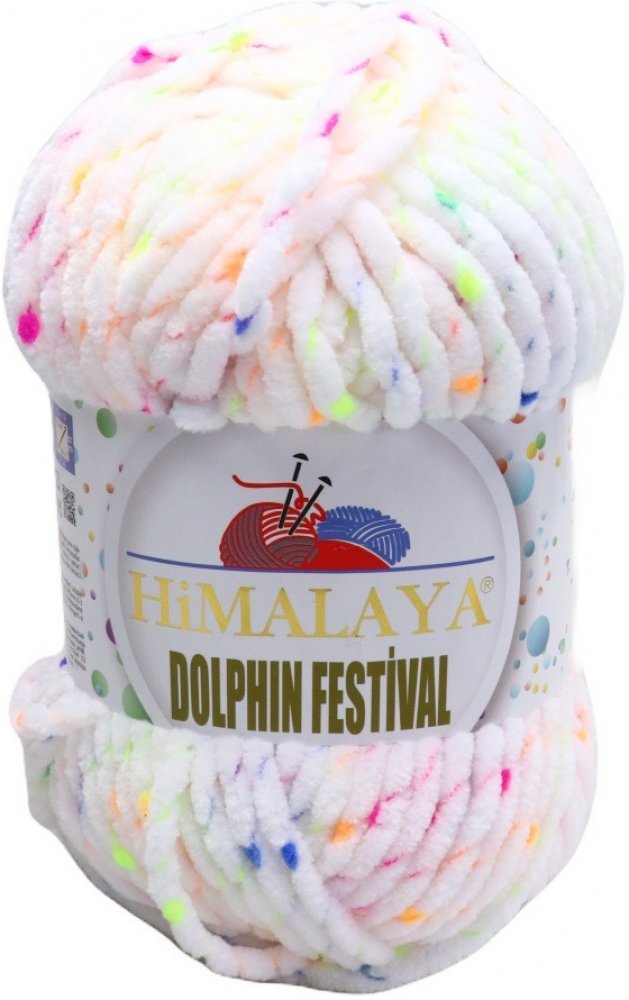 Himalaya Dolphin Festival je žinylková příze s barevným vláknem a nopky. Vlákno je obmotáno kolem příze.