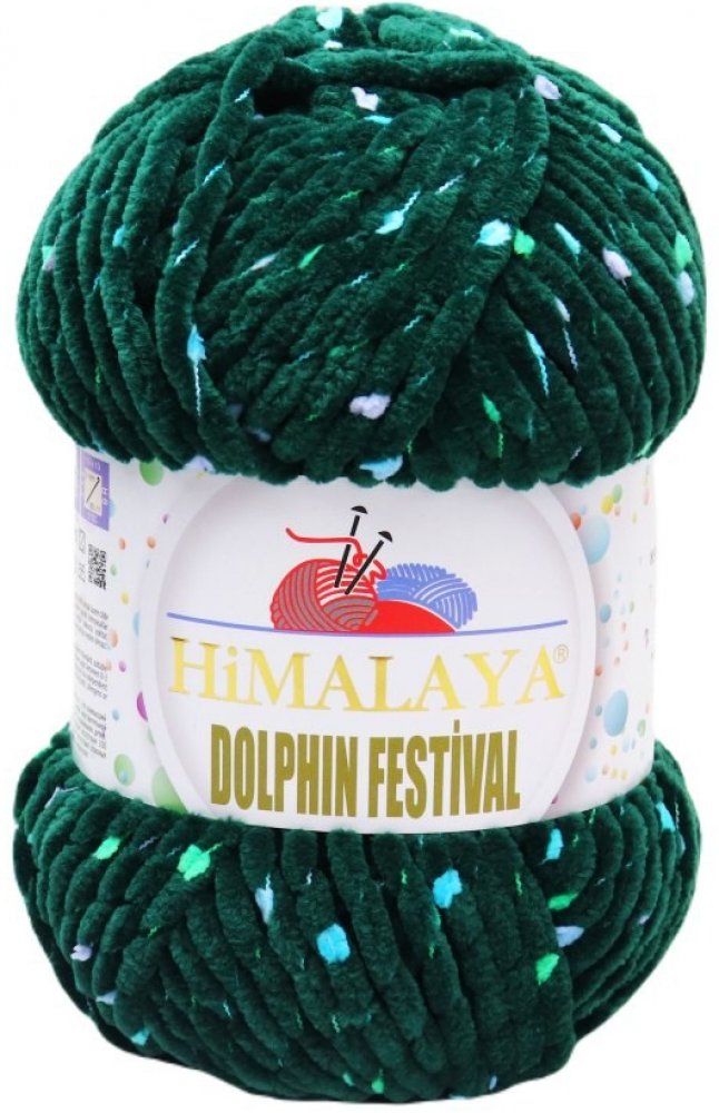 Himalaya Dolphin Festival je žinylková příze s barevným vláknem a nopky. Vlákno je obmotáno kolem příze.